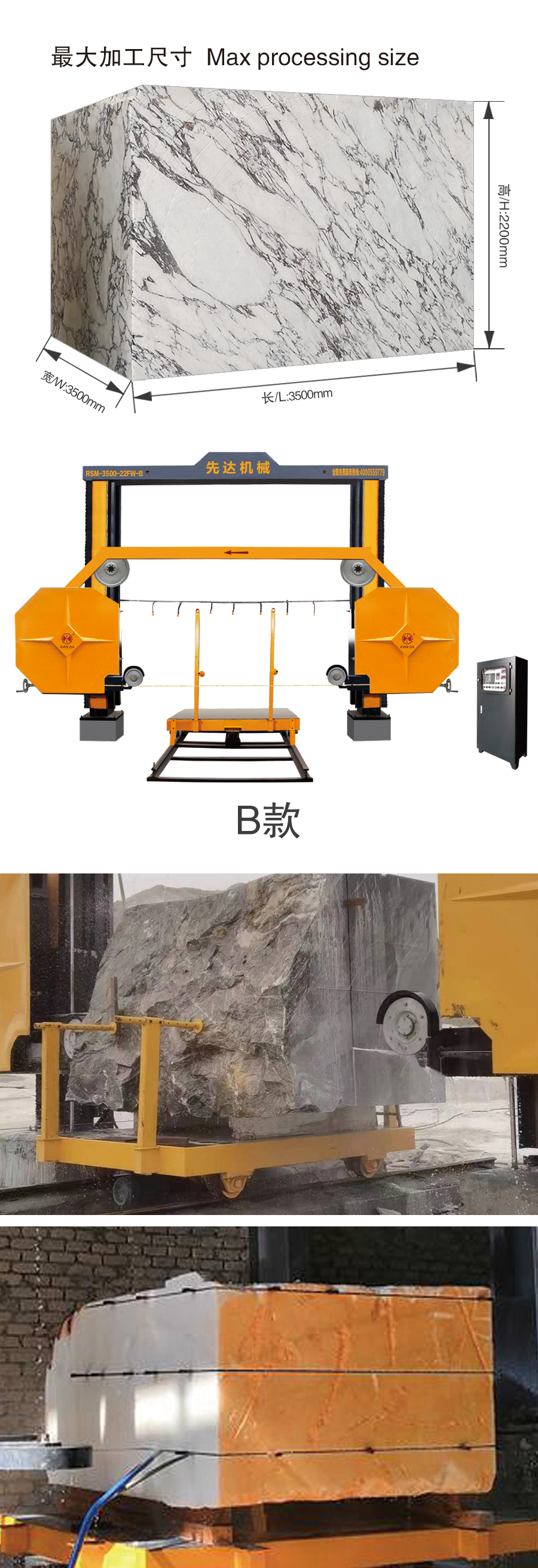 本機采用PLC控制,立柱兩端采用絲桿傳動結(jié)構(gòu),并通過中間傳動實現(xiàn)同步升降,加工穩(wěn)定,效率高,是大理石、花崗巖開料加工的理想設(shè)備。