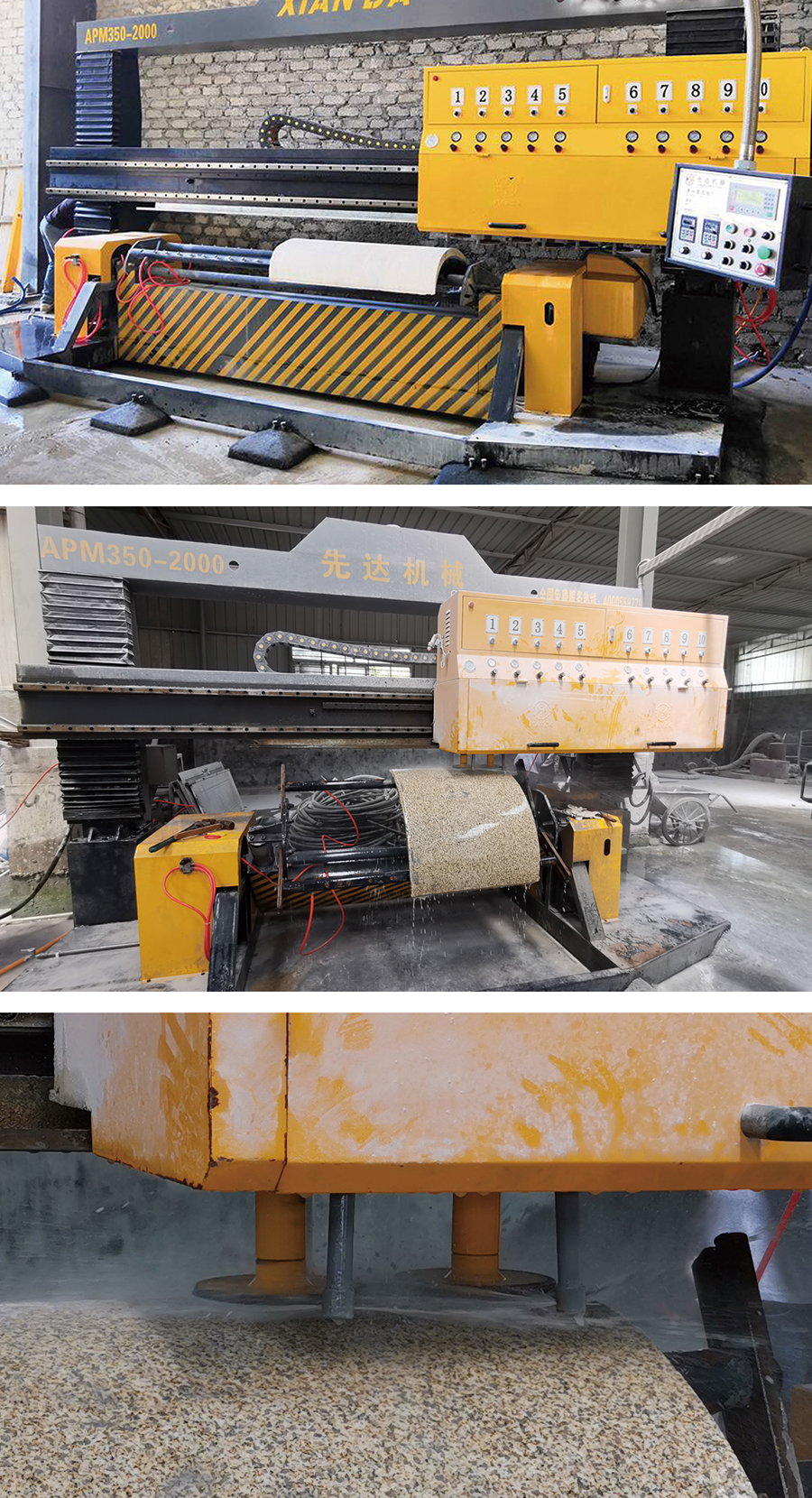 多頭圓弧板磨光機(jī)采用真空吸盤方式固定圓弧板,取代以往兩邊夾緊固定方式,解決了修邊后再磨板產(chǎn)生的垂直度和斜度誤差,并且消除了客戶的圓弧板邊角損壞的顧慮。再者采用線性導(dǎo)軌、多磨頭、PLC自動(dòng)控制,使其具有高精度、高效率、操作簡易等特點(diǎn),是圓弧板磨光的理想設(shè)備。